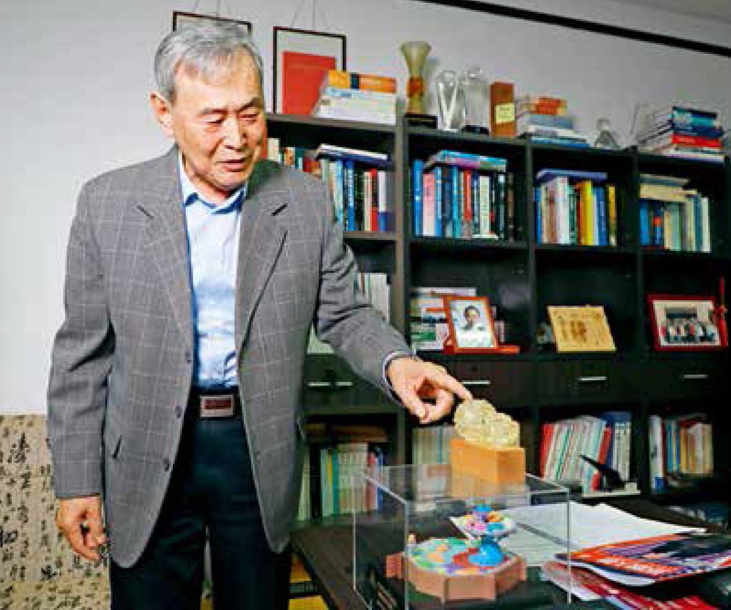 中國科學(xué)院院士隋森芳的辦公室有點(diǎn)狹小——一個(gè)大書柜、一張寫字臺、一張雙人沙發(fā)就占據(jù)了80%的地盤,其余的空間甚至放不下3把椅子,只能將3只圓凳摞起來抵在墻邊。但他的辦公室又相當(dāng)溫馨:寫字臺上擺放著一個(gè)3D打印模型,是學(xué)生在他生日時(shí)送的禮物(見右圖);墻上的鏡框里,嵌滿了學(xué)生們的大頭照;書柜里擺放著他與學(xué)生的合影及各種紀(jì)念品……可以說將學(xué)術(shù)氣與生活氣融為一體了。