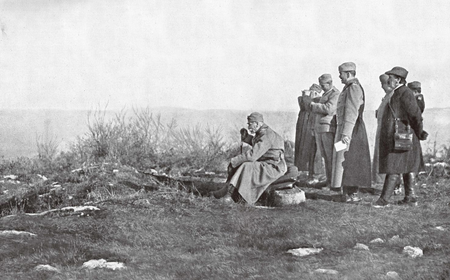 創(chuàng)作于1914年12月的畫作《統(tǒng)治者的榜樣:彼得一世觀察戰(zhàn)役進程》。