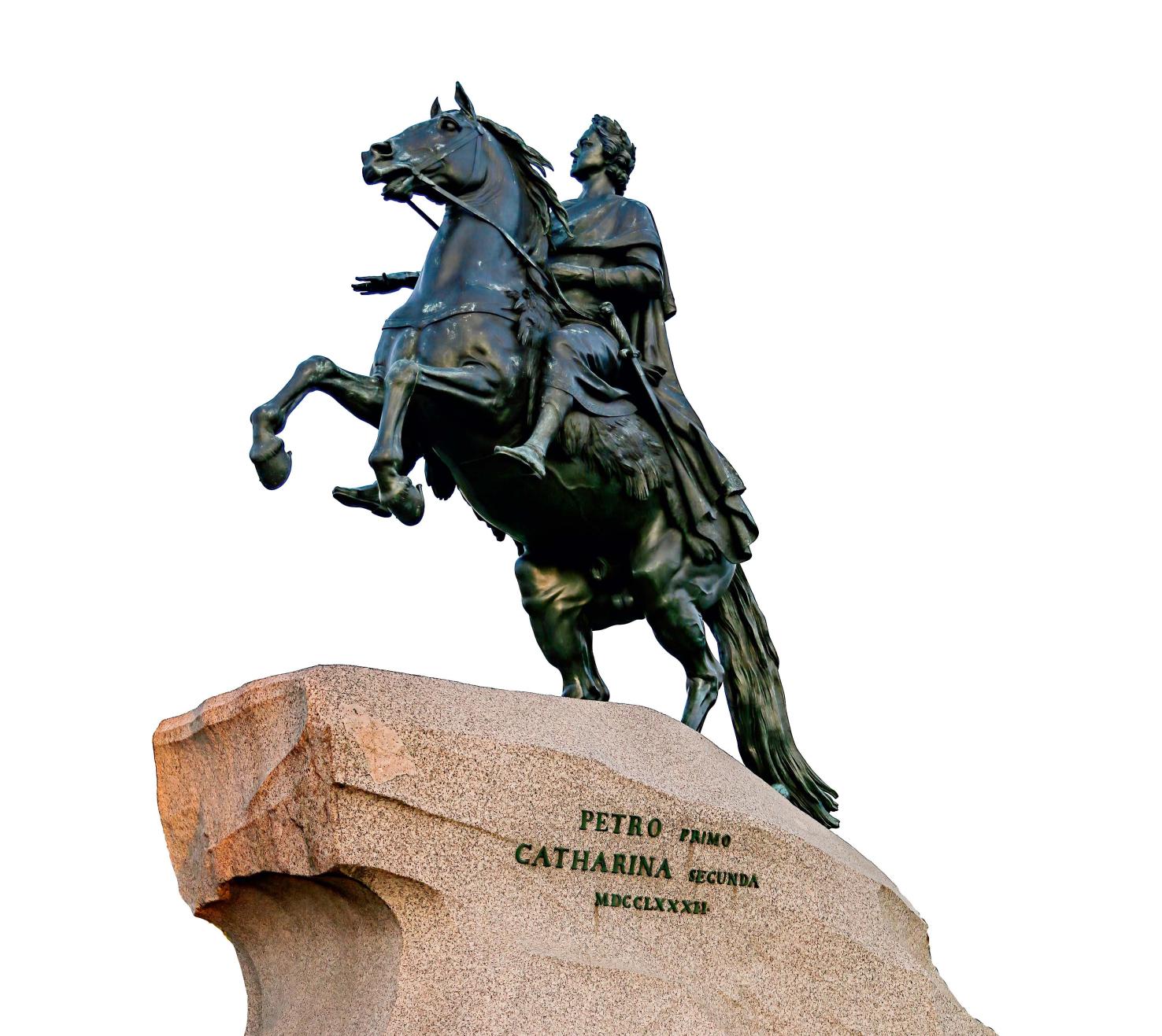 葉卡捷琳娜可謂彼得一世的狂熱信徒。登基伊始,她就宣稱自己是彼得一世的繼承者。執(zhí)政多年后,她請一位法國雕塑家為“偶像”塑像。至今,這尊巨大的彼得一世騎馬像仍矗立在圣彼得堡,雕像基座上的話是葉卡捷琳娜命人鐫刻的:“致彼得一世——葉卡捷琳娜二世。”