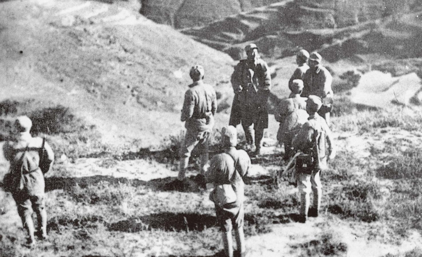 1937年11月,徐向前(正面中立者)在廣陽伏擊戰(zhàn)前線指揮作戰(zhàn)。