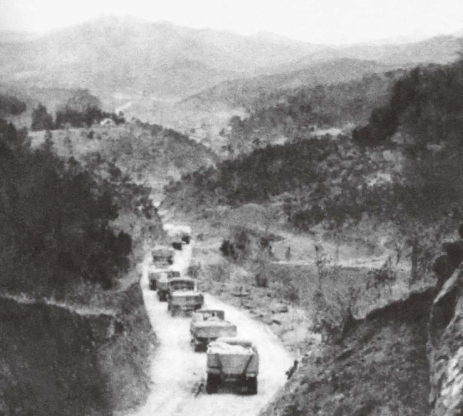 日軍輜重汽車在響堂鋪段公路上穿行而過。