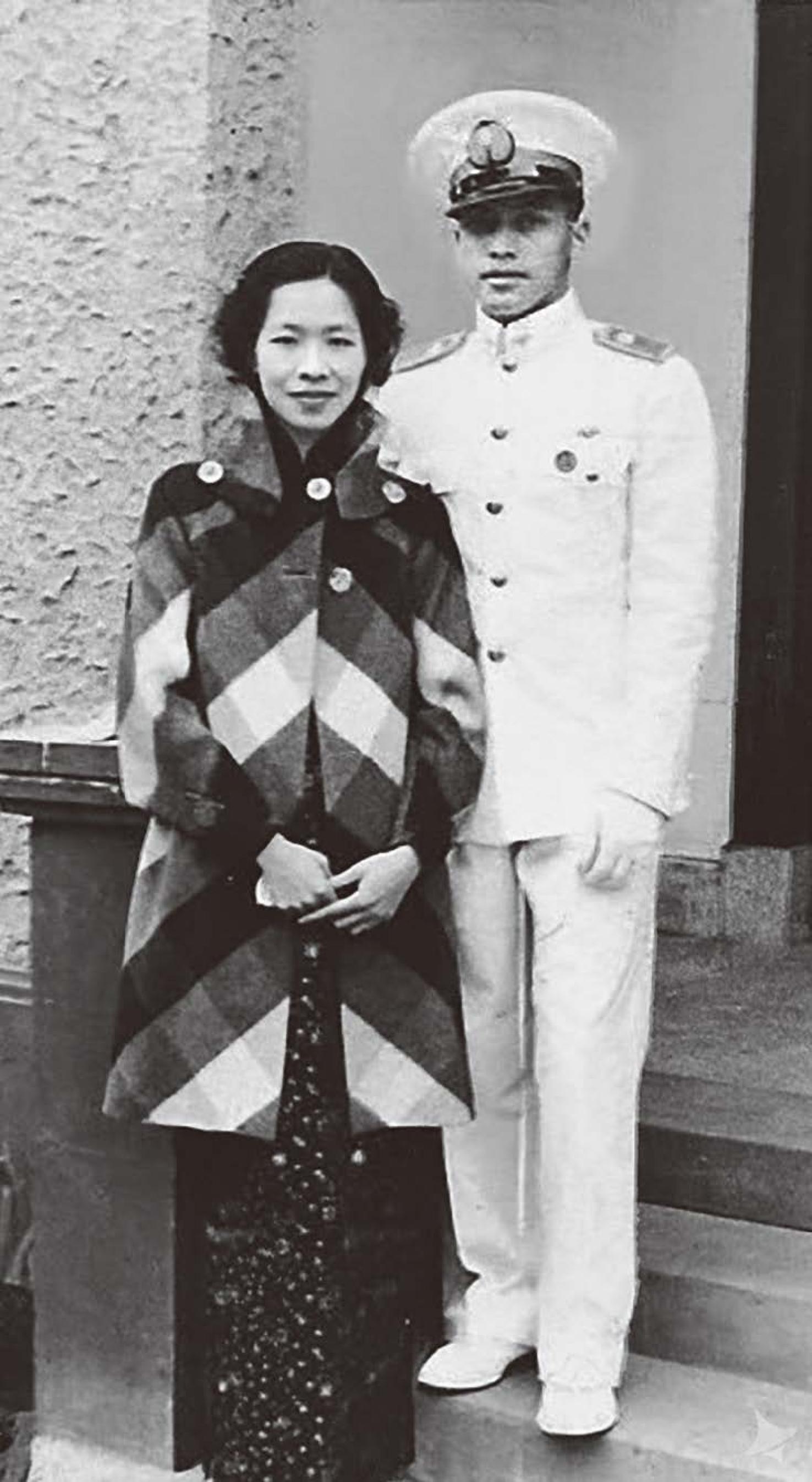 陳瑞鈿(右)與第一任妻子伍月梅合影。