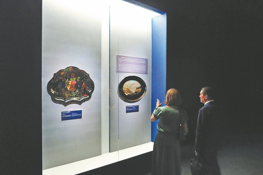 Plates with rich decorative motifs from the State Historical Museum, Russia, on show at the National Museum of China. JIANG DONG/CHINA DAILY
