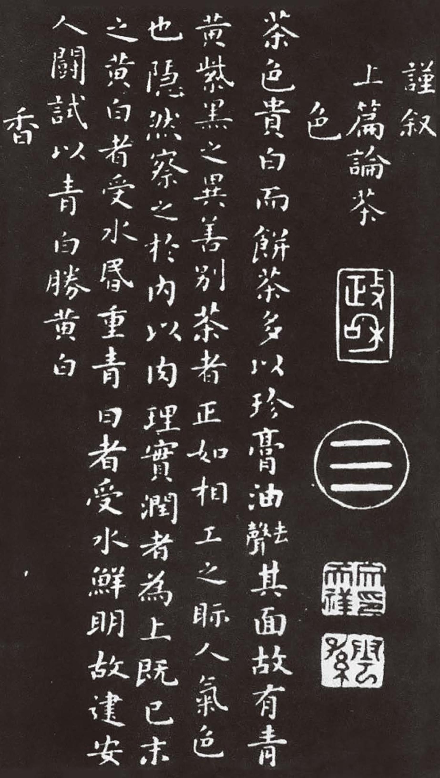 不僅有實(shí)踐,還有理論,蔡襄還專門寫了一篇《茶錄》。論茶之書,《茶錄》之前有唐代陸羽的《茶經(jīng)》,不過未曾談到福建的茶人茶事;與蔡襄同時(shí)代的丁謂撰有《茶圖》,談到怎么采茶和制作,但沒論及怎么烹茶和品茶。有感于此,蔡襄親自入山,與茶農(nóng)、茶師相處,探詢茶葉的栽培、采摘、焙制、烹試技術(shù),寫下《茶錄》。正文約800字,分為上、下兩篇:上篇主要講茶湯品質(zhì)和烹飲方法,下篇主要談茶器。通觀全文,見解獨(dú)到,細(xì)致入微,可見蔡襄是一位懂茶、愛茶之人。